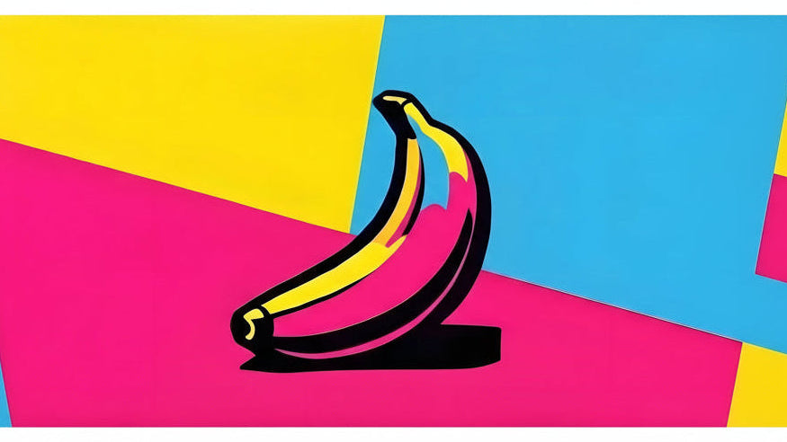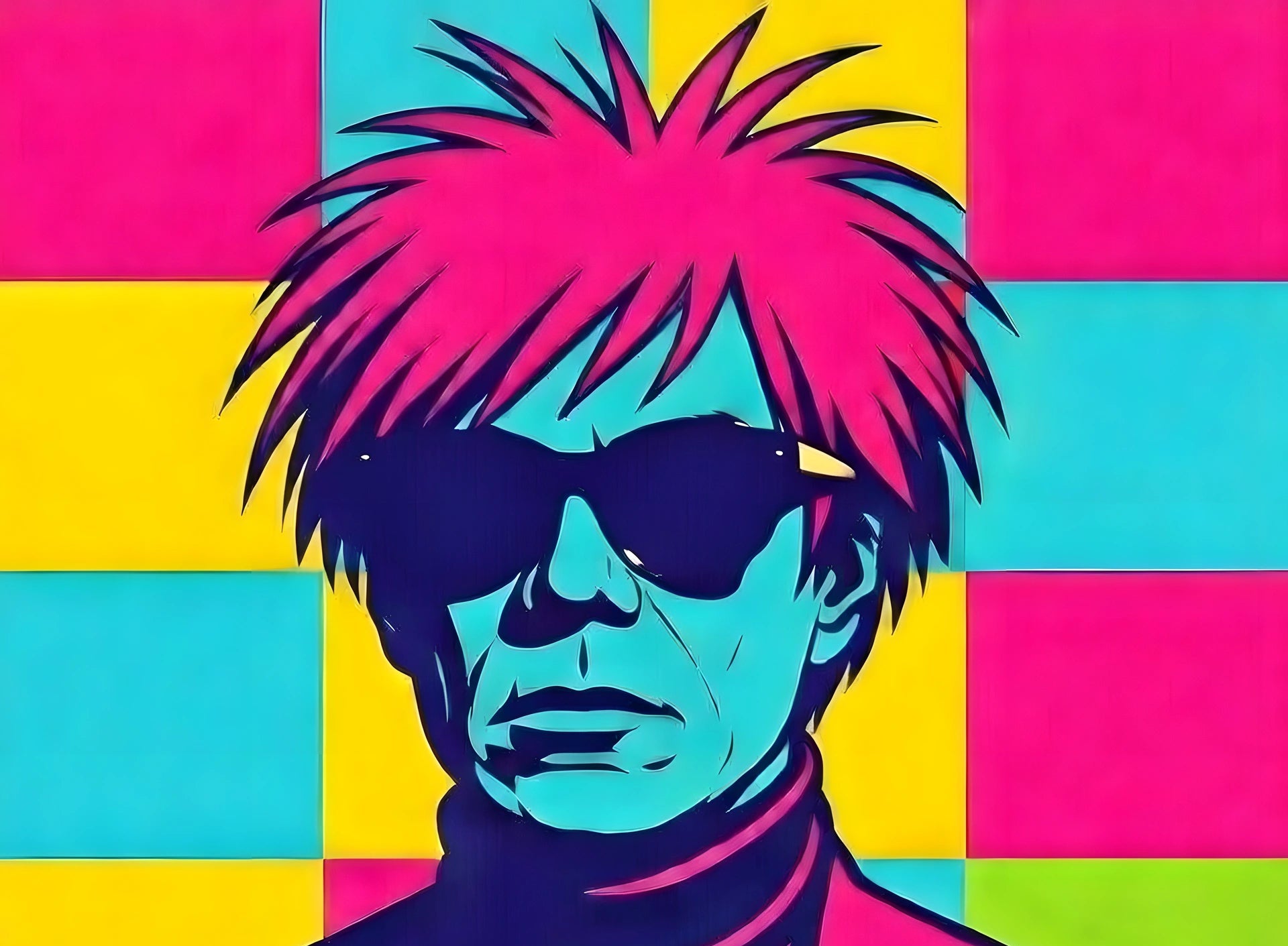 Bold electric pink and cyan split the silhouette, mirroring pop art’s high-contrast power.